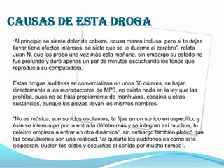 Web httpsmeganzdcQ0GJTRF5A-I_jMUZwOikkZehoH3aRvrixnVZGUZ4ntGE3XuOsNo es nuevo el uso de drogas auditivas como opcion para el uso recreativo y terapeutico. Web LAS DROGAS AUDITIVAS UNA NUEVA ADICCIÓN QUE CIRCULA EN INTERNET by evelyng_vizcarra. Mejora el estado de nimo y el.